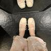 Sheepskin~ Height increase 4cm bow square head versatile shallow mouth Mary Jane single shoes women's flat shoes