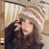 New knitted hat children's winter wool striped plush hat warm thickened large head circumference ear protectors stacking hat