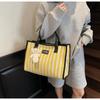 Striped canvas bag women's large-capacity new autumn and winter versatile cartoon shoulder bag college student tote bag