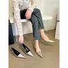 Silver fashion simple temperament button single shoes niche versatile pointed low heel shallow mouth pedal small leather shoes women's shoes