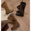 Cowhide version~ grape ma two ways to wear the same style, western boots can be folded thick heel buckle stacked boots women's boots
