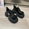 British trendy cool square head small leather shoes for women's 2025 autumn new models, Jue Jue Zi thick-soled heightening metal buckle loafers