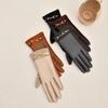Autumn Winter Fleece Lined Thick Warm Faux Suede Driving Leather Gloves Cycling Versatile Fingerless Women Windproof Touchscreen