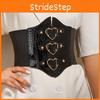 This feminine British retro wide faux leather waist belt, providing a bold, vintage-inspired silhouette. Crafted from synthetic leather, it combines quality with a classic aesthetic suitable for office or casual settings. Ideal for enhancing dresses or high-waisted outfits, it is easy to maintain with a gentle wipe.