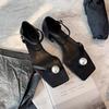 Grape mom studiolee simple square head pearl toe high heels one-word buckle strap thick heel sheepskin sandals women
