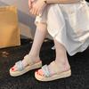 Модные летние новые стразы модная уличная обувь универсальные увеличенные шлепанцы с круглым носком и открытым носком на небольшой платформе пляжные тапочки