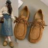 2025 осень новые повседневные туфли-бини на плоской подошве женские кенгуру на шнуровке удобные два способа носки замшевые лоферы туфли