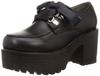 Plus Oxford Thick 5cm Tank 2E [San-A Feminine] Lace-up Shoes, Sole, Heel, Sole, Ribbon, 3580, Women's, Black, 26.0cm~26.5cm,